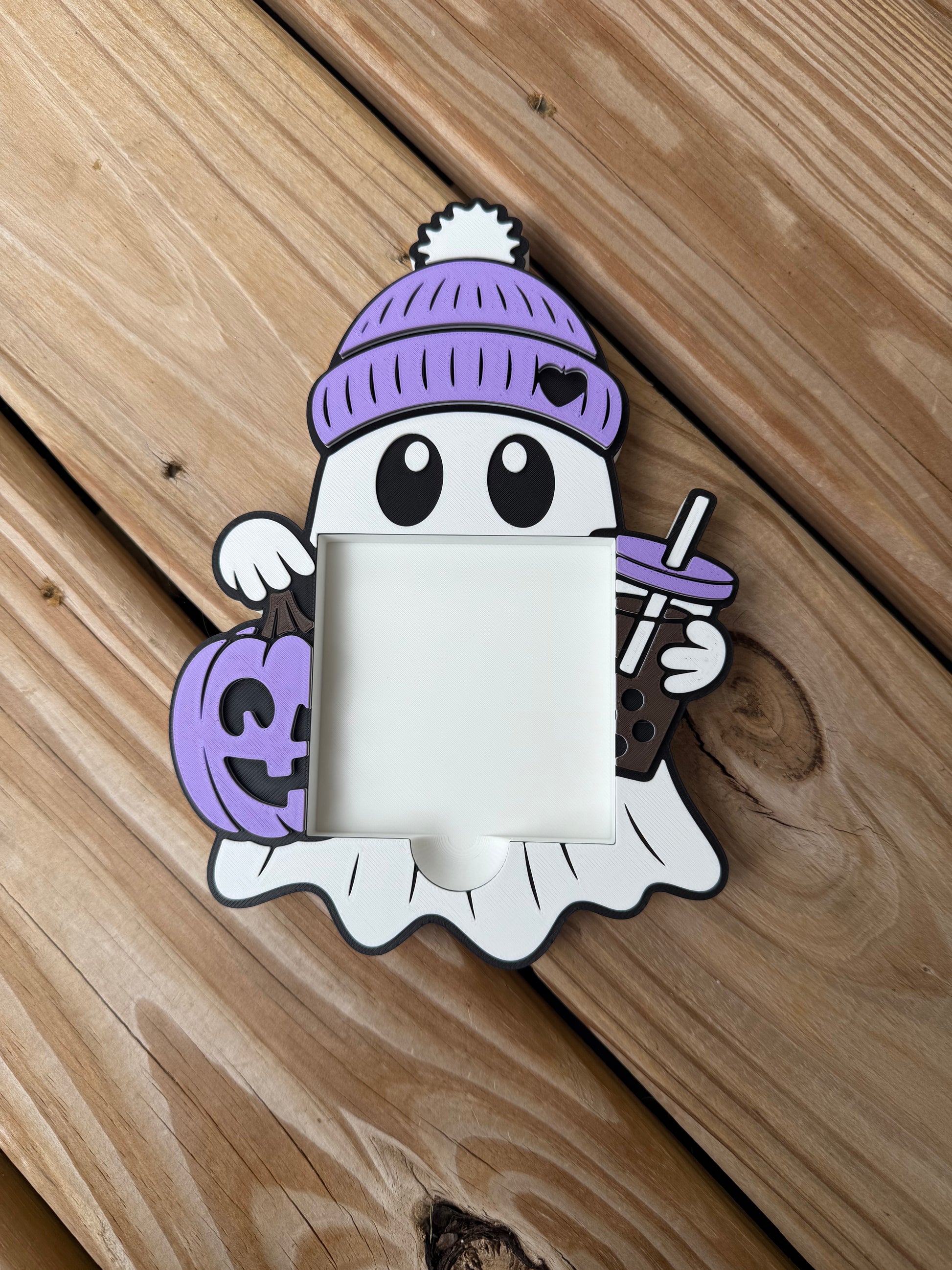 Bring playful charm to your desk with this Cute ghost w/ coffee Post it Note Holder. Its adorable design keeps your notes handy while brightening your workspace with a touch of mischief and fun. Perfect for fall lovers and anyone who loves a quirky way to stay organized.